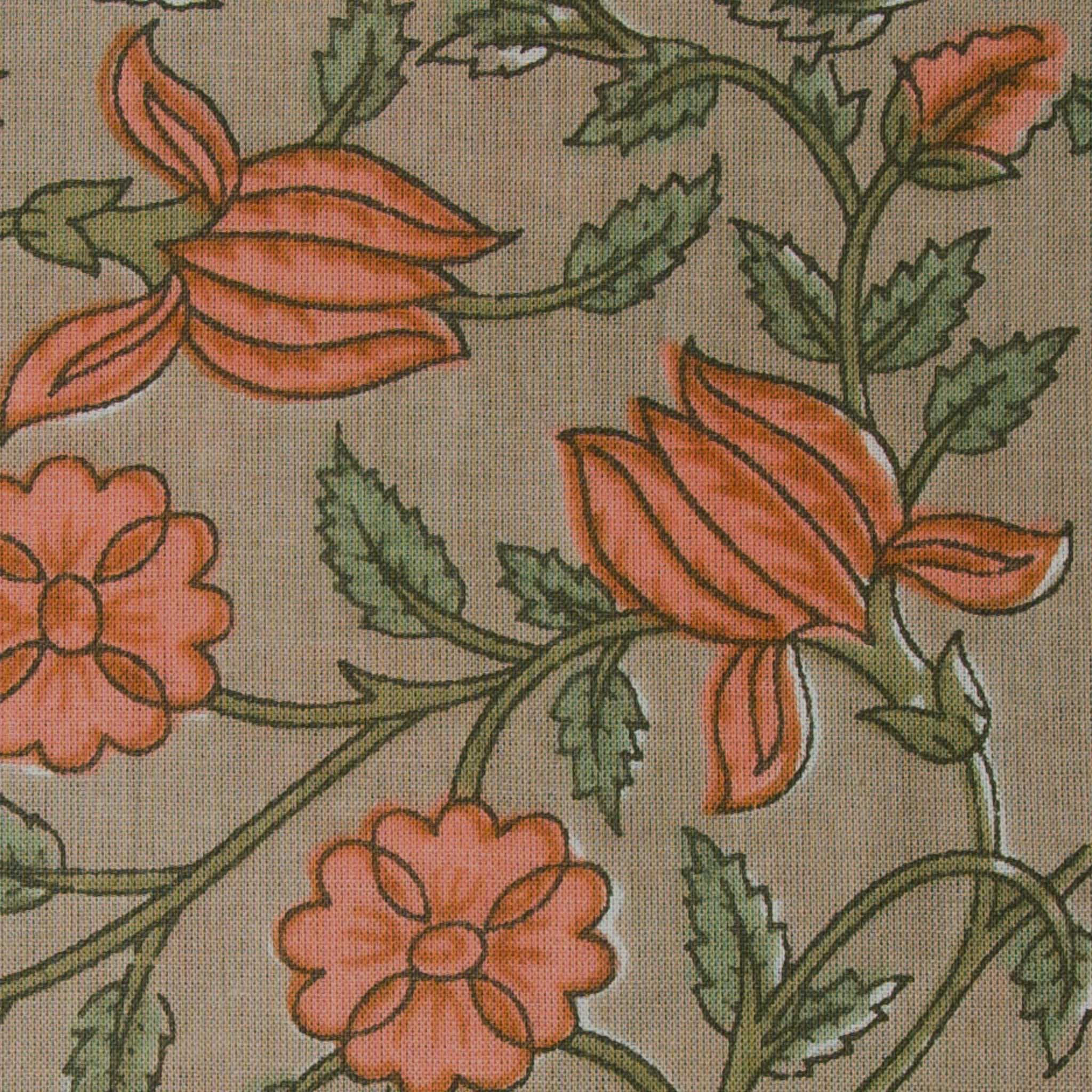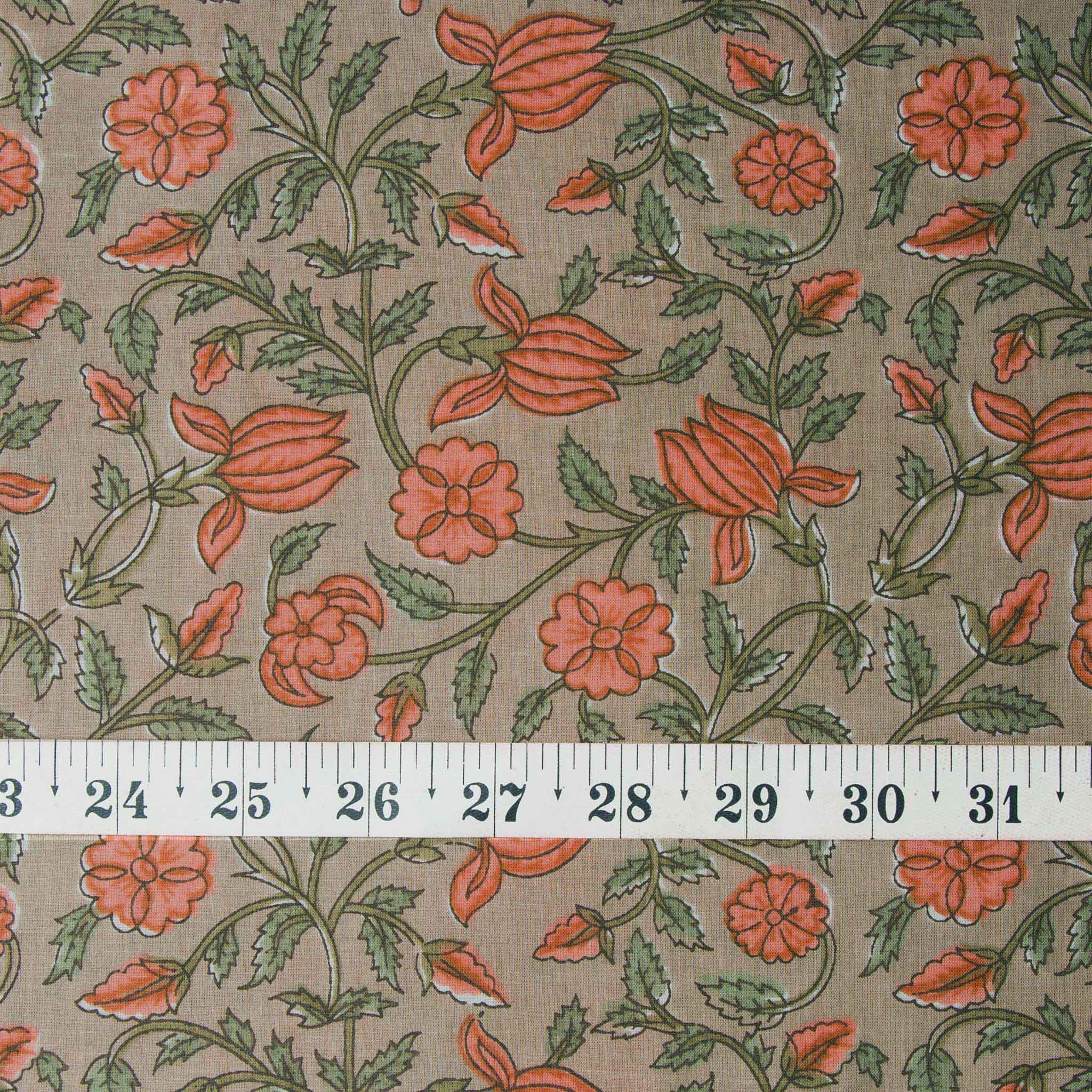 Precut 1meter - Orange & Brown Cotton Fabric with Floral Print