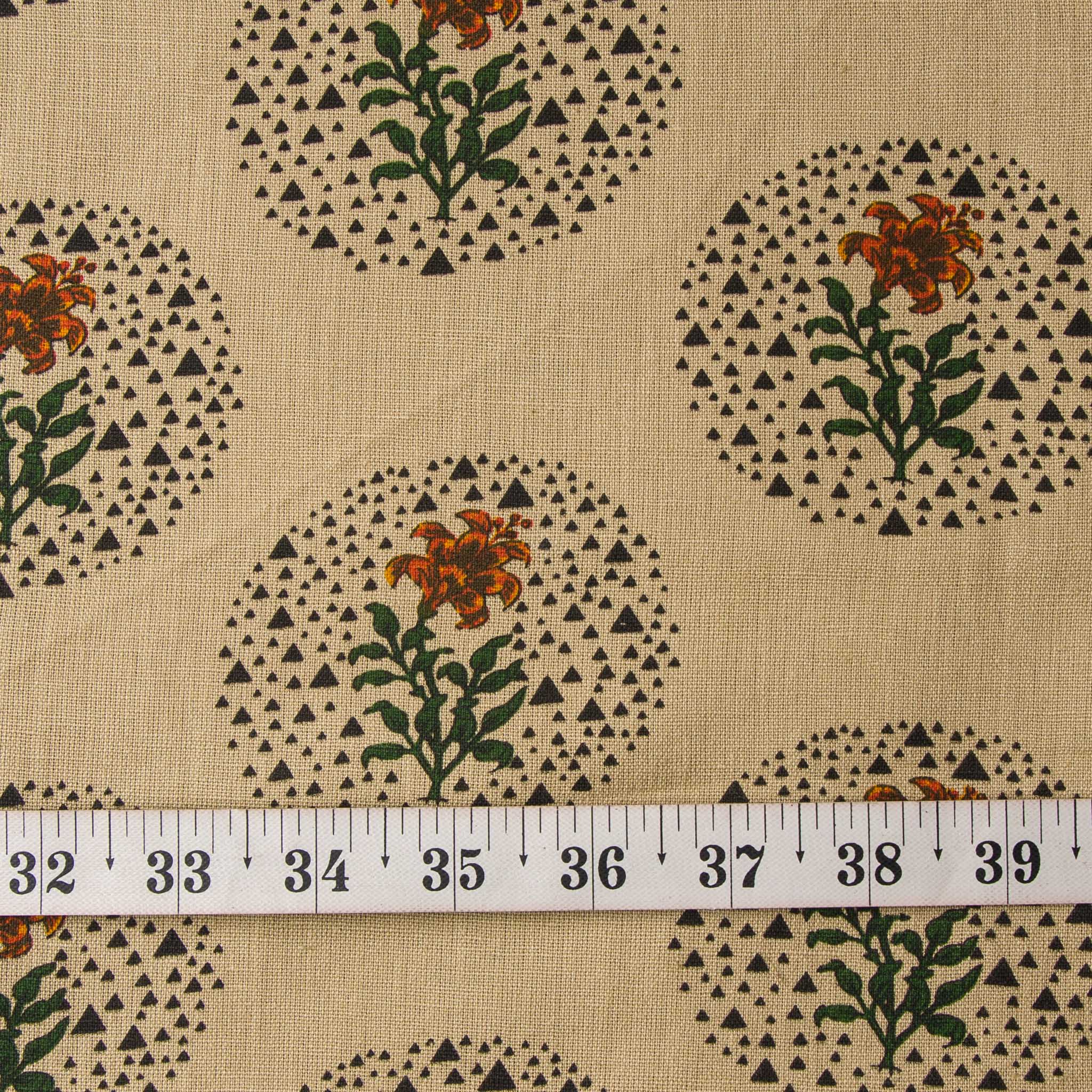 Precut 1meter - Beige & Green Textured Printed Cotton Fabric